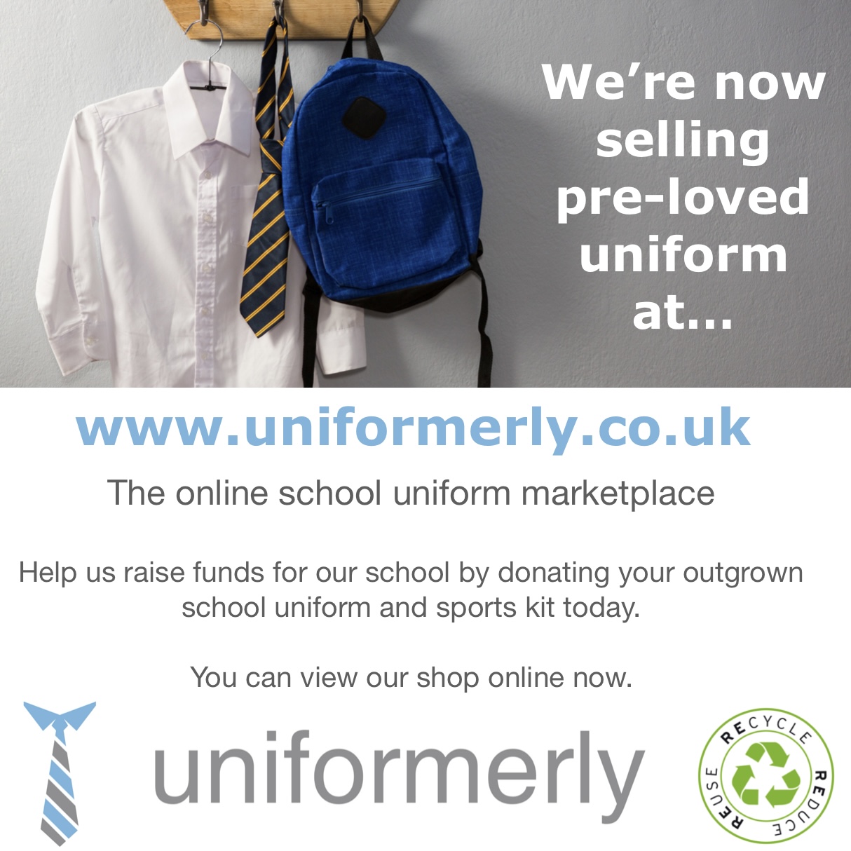 We have registered our school with 'Uniformly' which is an online marketplace that allows you to buy, sell or give away second-hand school uniform and school related items to other parents of our school.